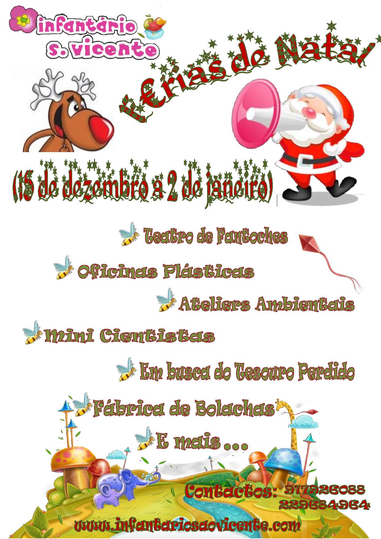 …lembramos que o Infantário S. Vicente tem atividades programadas para as Férias do Natal (excepto nos dias 24 e 31 em que está encerrado), no sentido de continuarmos a cativar a vontade espontânea de gozar o dia a dia.