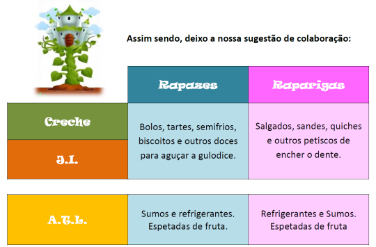 …Pelo que pedimos a colaboração de toda a comunidade escolar no que toca aos mimos para o estômago e que nos permitirão passar um fim de tarde descontraído, sem que nada falte!